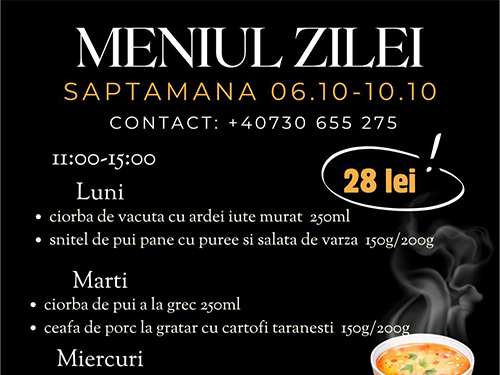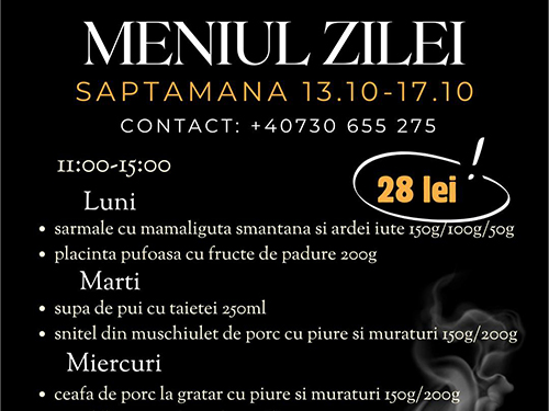 În zilele de vineri și duminică pentru perioada SEP/OCT 2026 10% reducere la meniu & pachetul I de băuturi gratuit! …